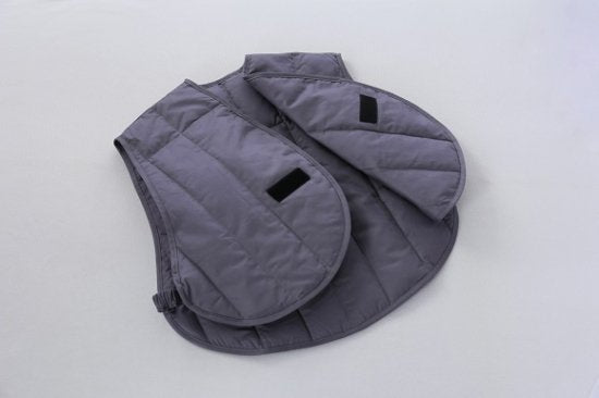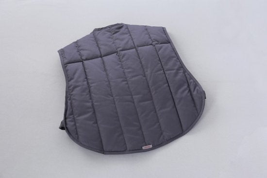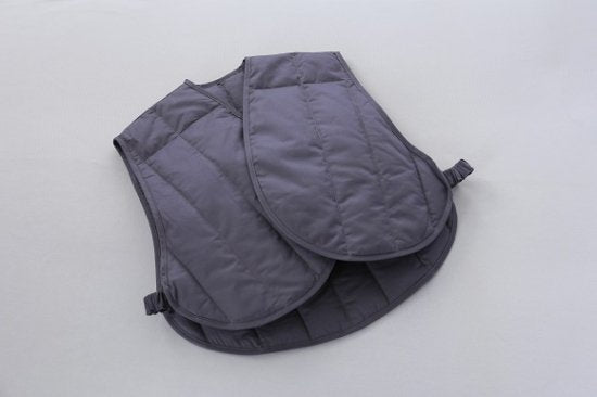 背中の上部から肩口にかけての冷えやすい部分を温めます。上質ダウンの自然な温もりで、ふんわりとやさしく保温します。肌着のように、地肌に直接着ても快適です。