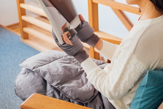 指先までポカポカ。独自の縫製仕様でやさしく包み込み、手首のリブは締め付けがありません。親指だけを出せるデザインが、はめたままで本を読むなどの簡単な手作業を可能にしました。